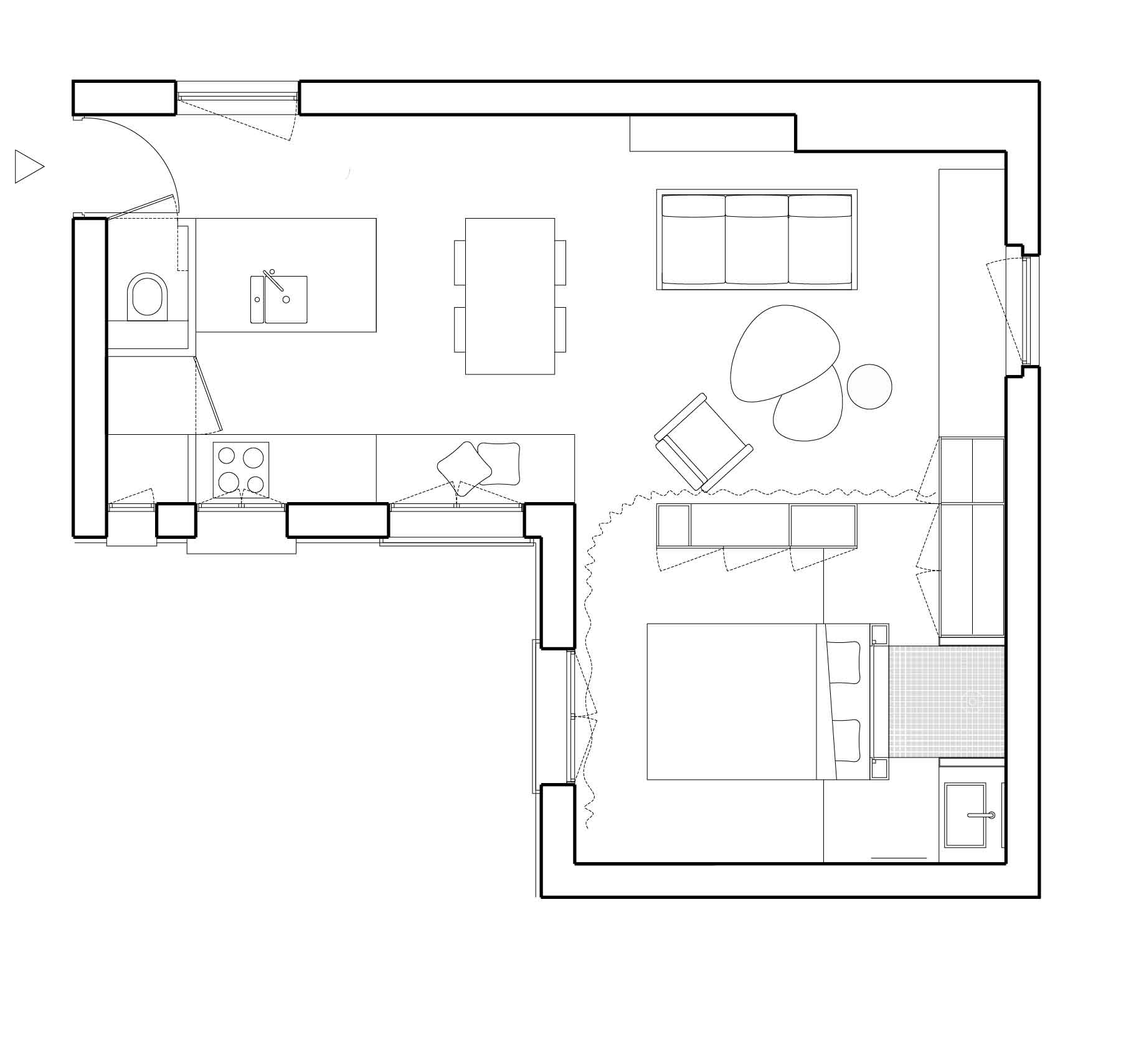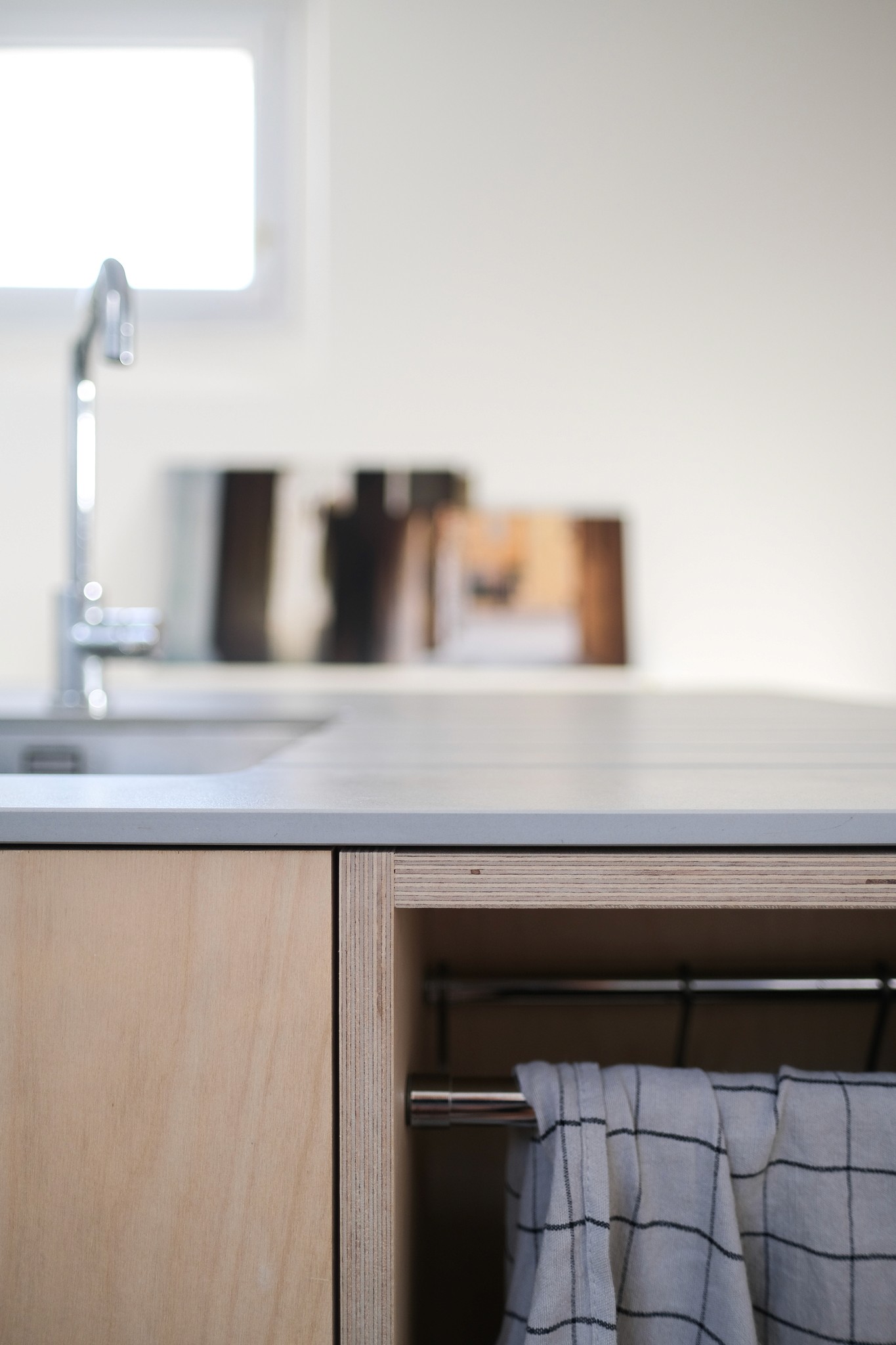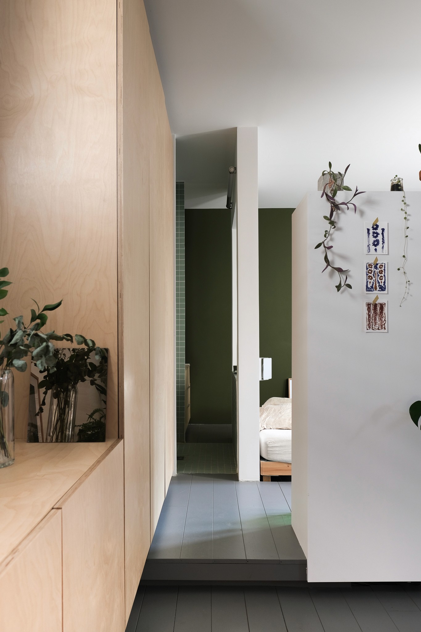 L’appartement se situe au 5ème étage d’un immeuble du début du XXème siècle dans le quartier Marx Dormoy dans le 18ème arrondissement de Paris. Nous sommes en présence d’un volume simple dont la morphologie en L permet des vues directes et biaises sur de grandes longueurs. De plus, des ouvertures sur quatre orientations permettent à la lumière naturelle d'inonder le volume tout au long de sa course quotidienne. Dès l’origine du projet il est décidé de faire tabula rasa de ce qui a pu préexister. L’ensemble des cloisons est abattu pour redonner une base neutre ou les seuls acteurs seront désormais lumière et mouvement. Le volume conservé ouvert dans sa totalité joue désormais comme un grand réflecteur de lumière naturelle. Trois ensembles disposés dans l’espace suffisent à définir espaces et usages, déplacements et mouvements. Ce nouvel aménagement pensé comme un paysage intérieur donne lieu à des espaces continus mais dissociés. La circulation du regard à travers de grandes lignes de fuites et la circulation du corps sans impasse participe à la sensation de grande spatialité. La réduction des éléments, des matières et des teintes à la plus grande simplicité génère une atmosphère douce et paisible. Un sol gris uni abstractise le plan horizontal. Tandis que l’ensemble des murs sont blancs. L’utilisation du bouleau pour les meubles sur mesure permet de les dissocier du volume d’origine. Celui-ci qui est toujours redonné à lire dans sa plus simple définition volumétrique.